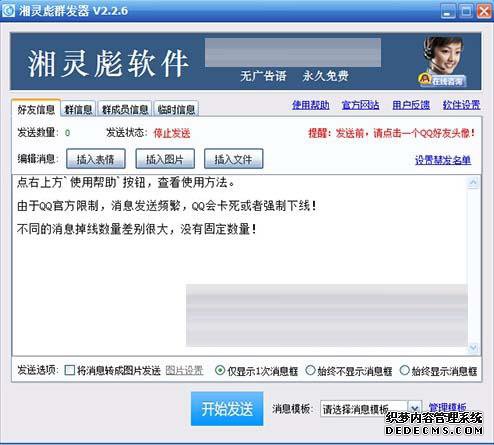6.消息组可以自动添加对方的昵称和QQ表情,以增强隐私性。7.如果您只想向特定的朋友组发送消息,则只能部署这些组8.如果您不希望某些用户接收群组发送的消息,请在禁止的货件列表中添加昵称QQ。9.自动记录每次装运的详细信息。