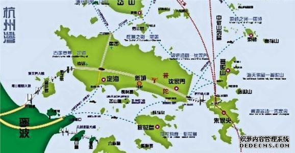 如果金海市从镇海到舟山,从安河收费站过海大桥后,它将到达富人区,然后向东南移动,并穿过两条巷子,即湘角和大港穿过舟山岛后,经过当前的地形并进入舟山市。